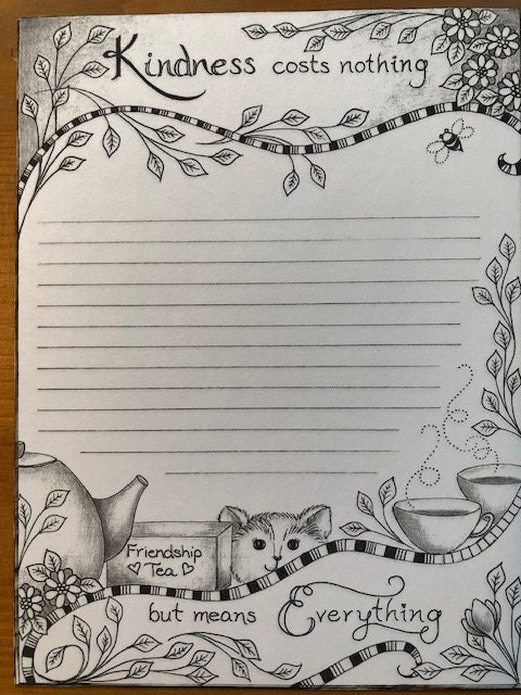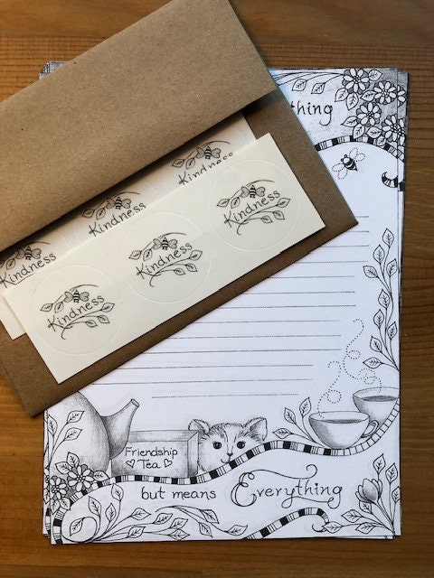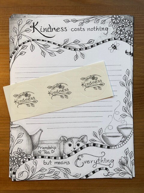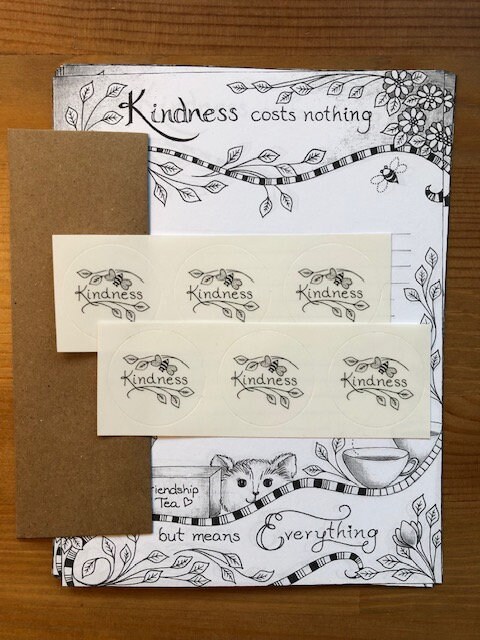 Stationery Set, Letter Writing paper, Decorative Notepaper “Kindness.” Set includes 8 notepaper sheets, 6 Kraft envelopes and 6 stickers.$9.30