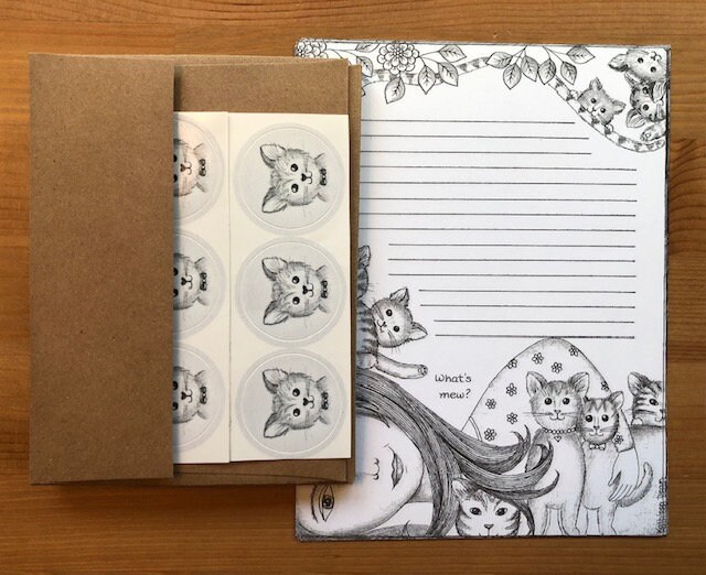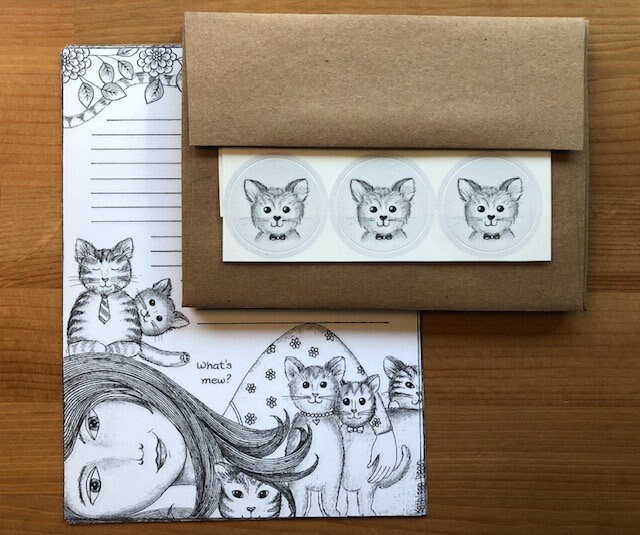Stationery Set, Letter Writing paper, Decorative Notepaper: What’s Mew? Set includes 8 notepaper sheets, 6 Kraft envelopes and 6 stickers.$9.30
