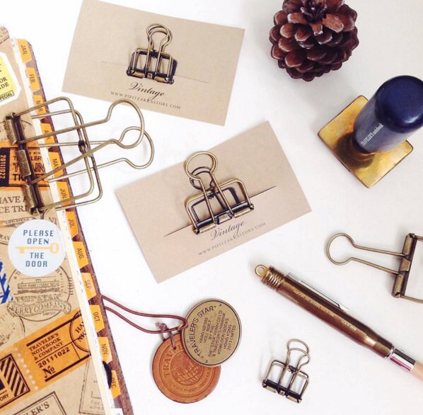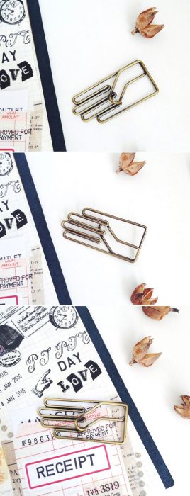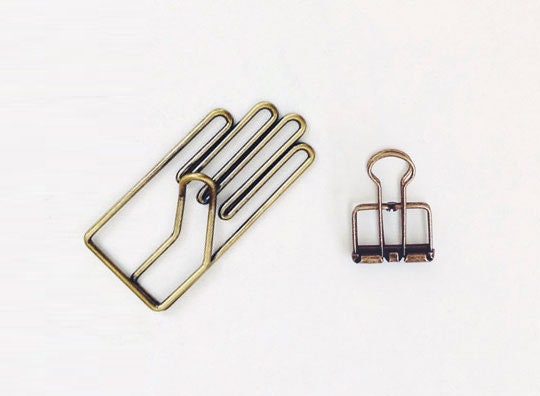 Vintage BRASS clip / Gekkoso Right Hand Clip – Stationery Clips, Paper Clips, Office Organizer, Binder Clips, Office Stationary Clips$1.07