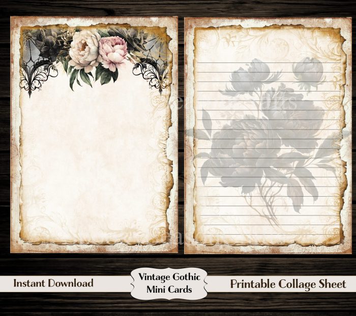 Each paper has a beautiful design featuring vintage tattered papers peony flowers & spider web motifs. You can use these papers to write letters to your friends and family, create stunning junk journal papers, make your own printable stationery or printable stationary, or decorate your digital stationery or halloween stationery. These papers are ideal for anyone who loves vintage, gothic and halloween style. They will add a touch of elegance and spookiness to your creations. Order yours today and enjoy the instant download!